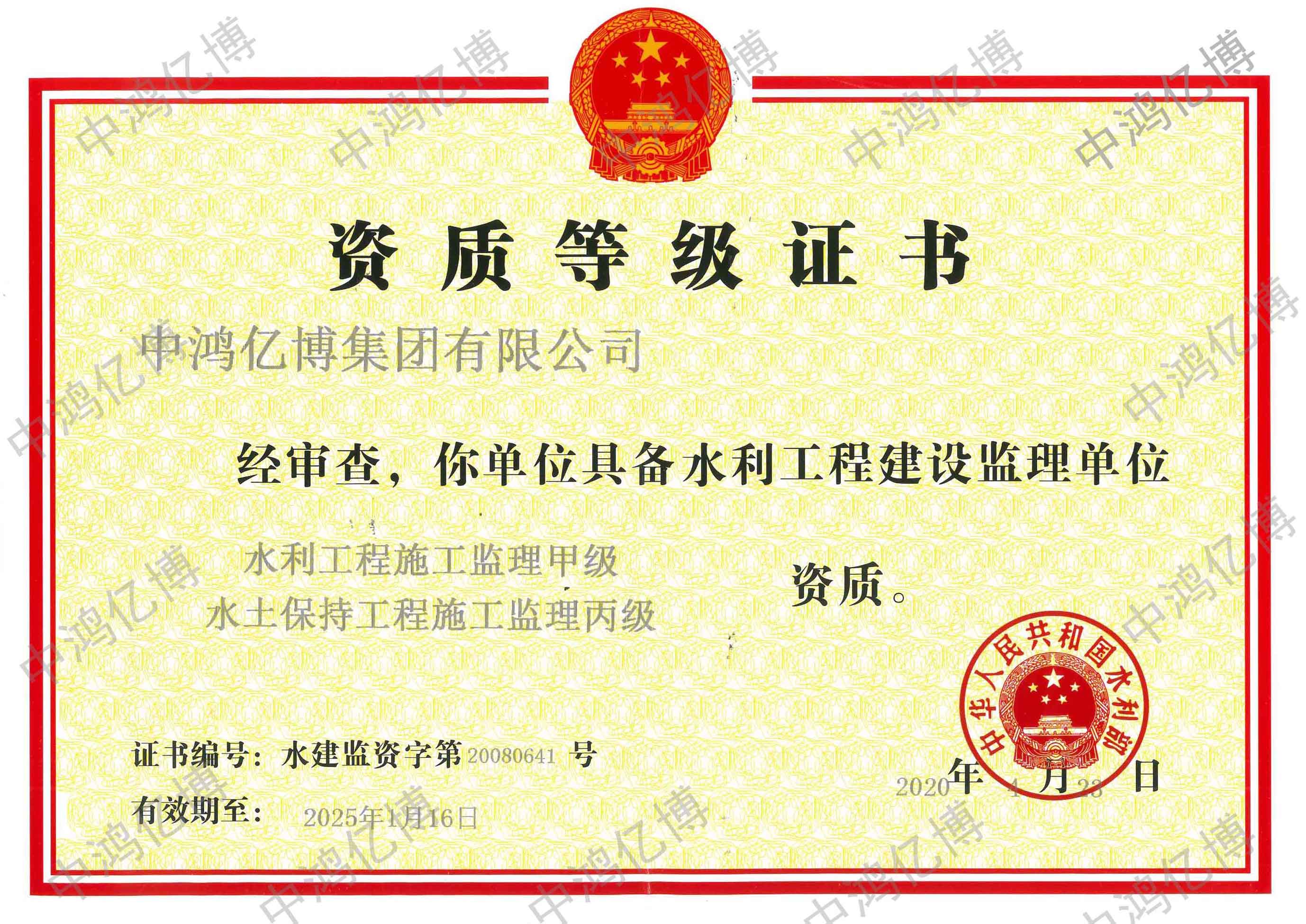2014年12月取得水利部颁发的水利工程施工监理丙级资质
