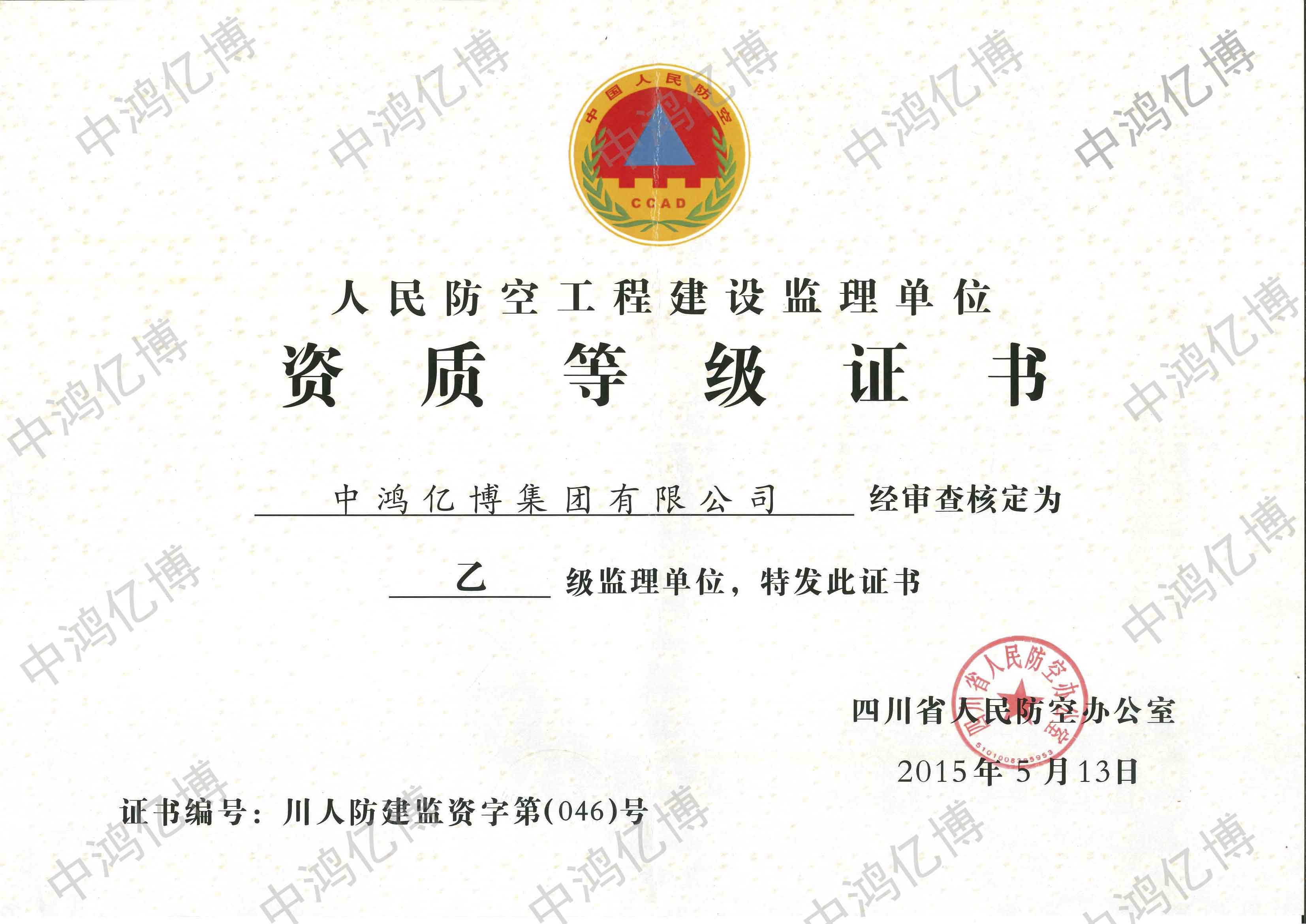 2015年5月取得人防办颁发的人民防空工程建设监理单位乙级资质证书