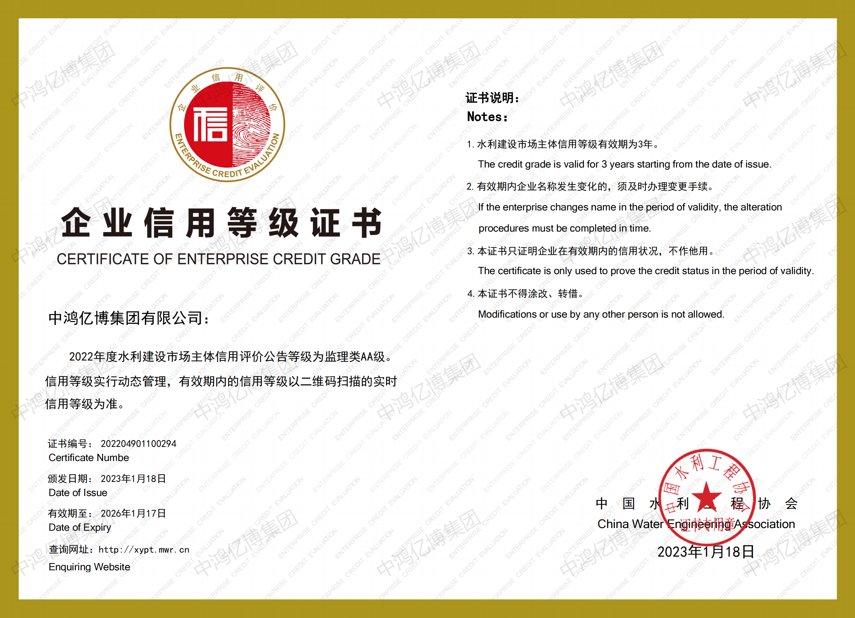 集团荣获“2022 年度水利建设市场主体信用评价监理类 AA 等级”