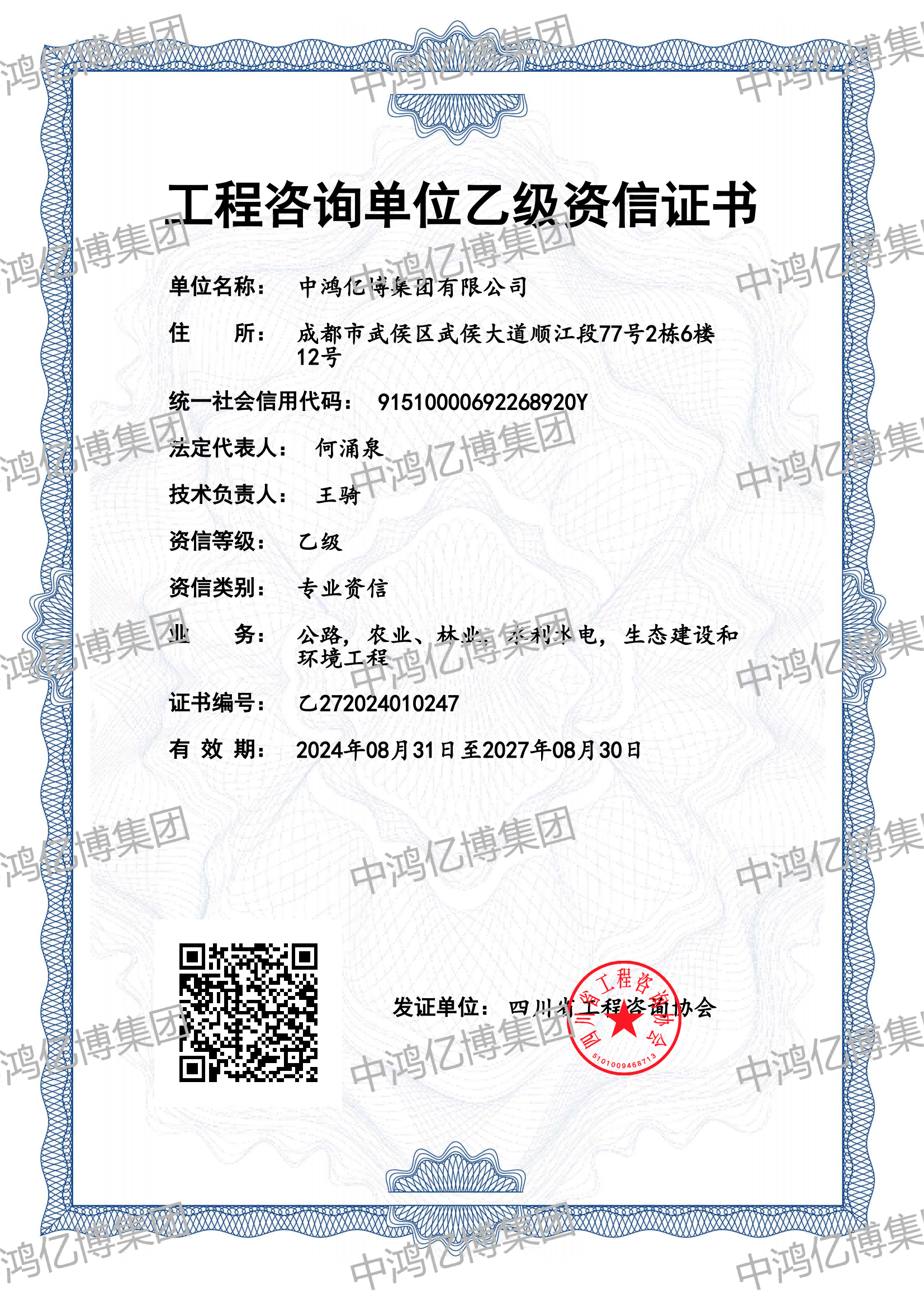 2016年8月取得发改委颁发的工程咨询单位资格乙级证书。