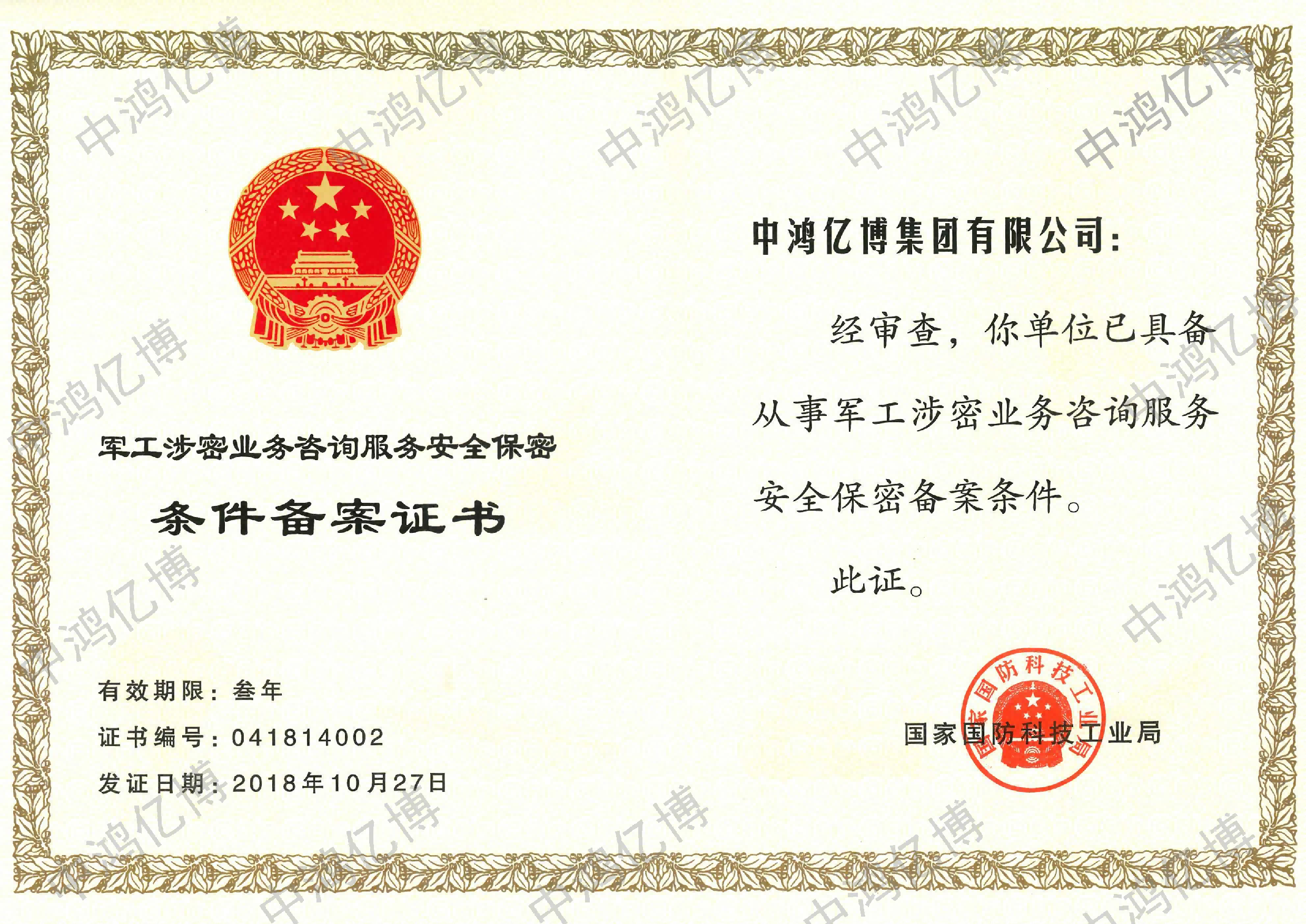 10月,取得军工涉密业务咨询服务安全保密条件备案证书