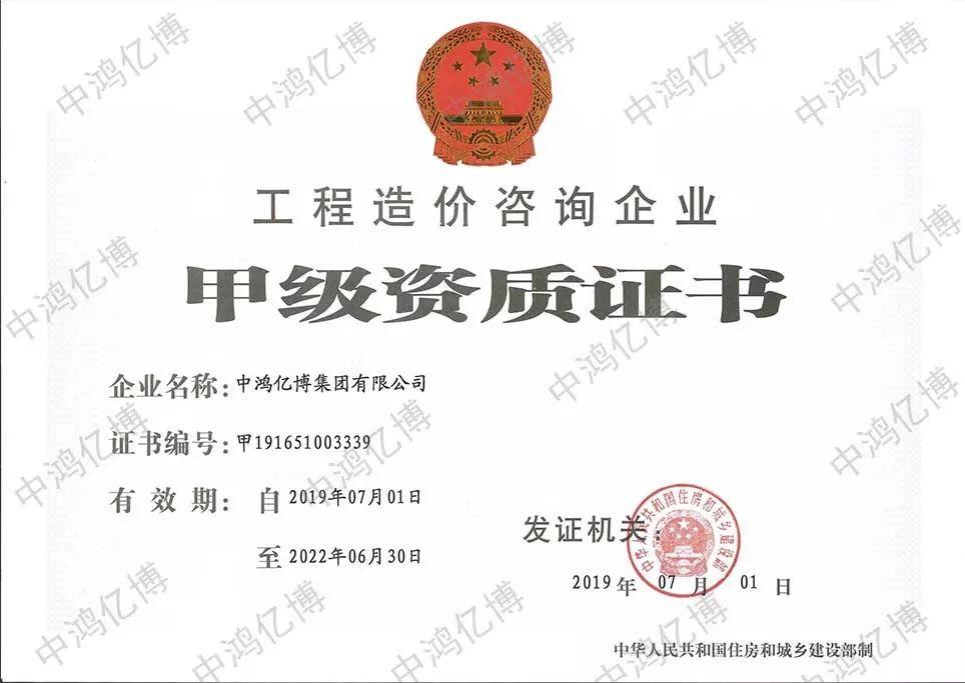 2016年6月取得住建部颁发的工程造价咨询企业甲级资质证书。