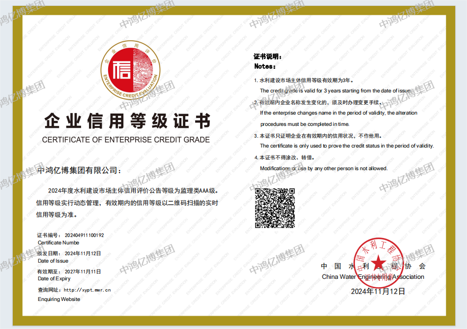 11 月,集团荣获“2024 年度水利建设市场主体信用评价 AAA 级”