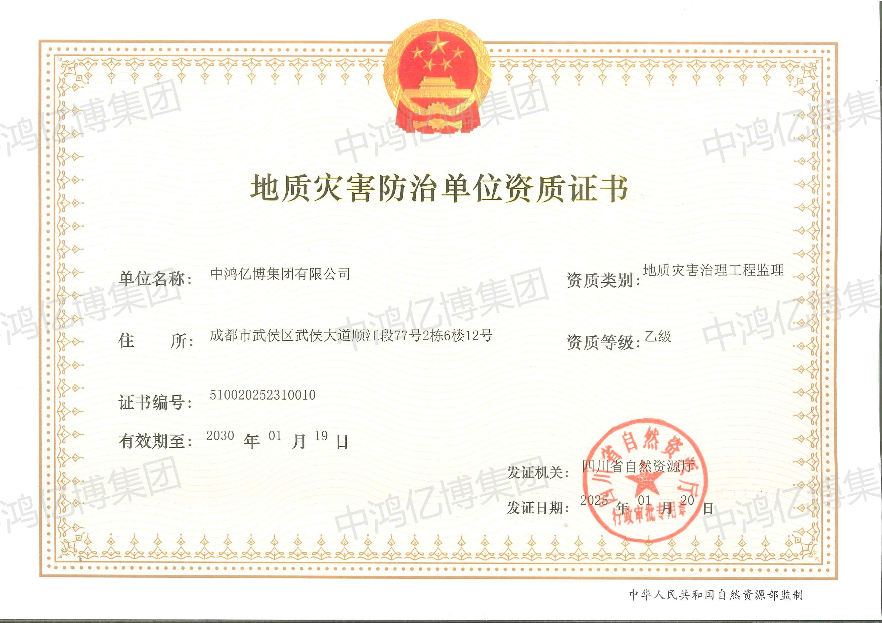 集团取得“地质灾害治理工程监理乙级资质认证”