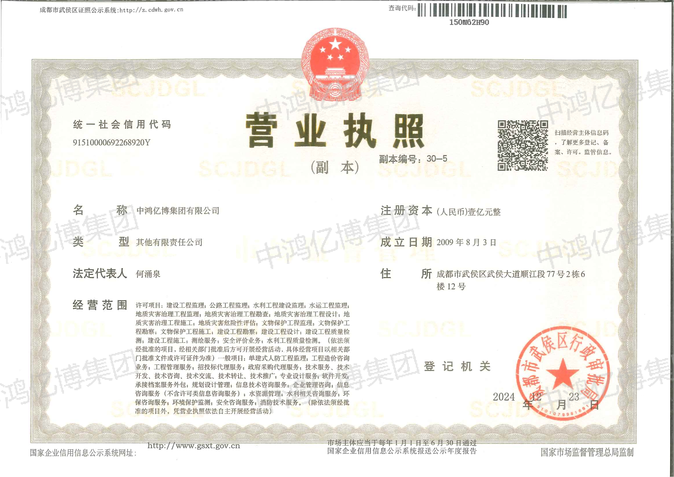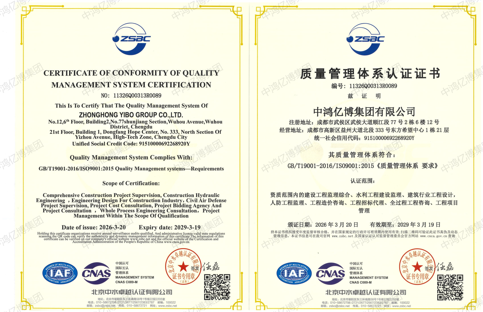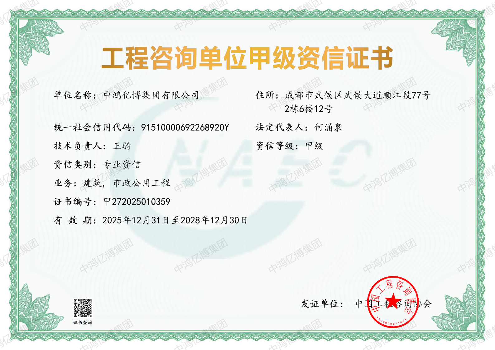 中鸿亿博集团有限公司成立于2009年8月,注册资金1亿元,是一家集工程勘察、工程设计、工程监理、项目管理、工程造价、招标代理、工程咨询、工程测绘、人防工程、检测鉴定及 BIM 于一体的能为建设工程全生命周期提供服务的综合性管理公司。