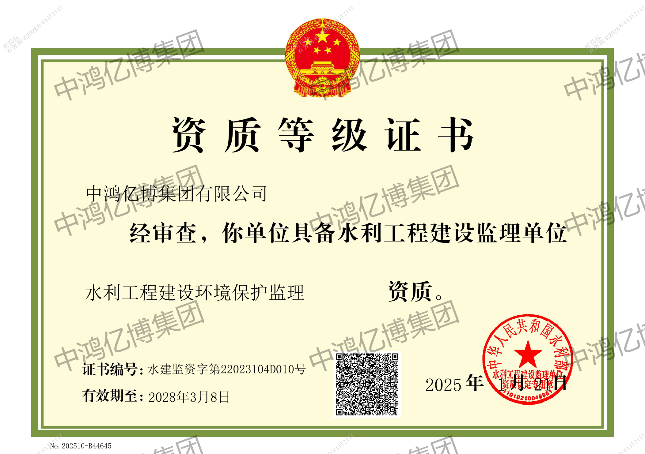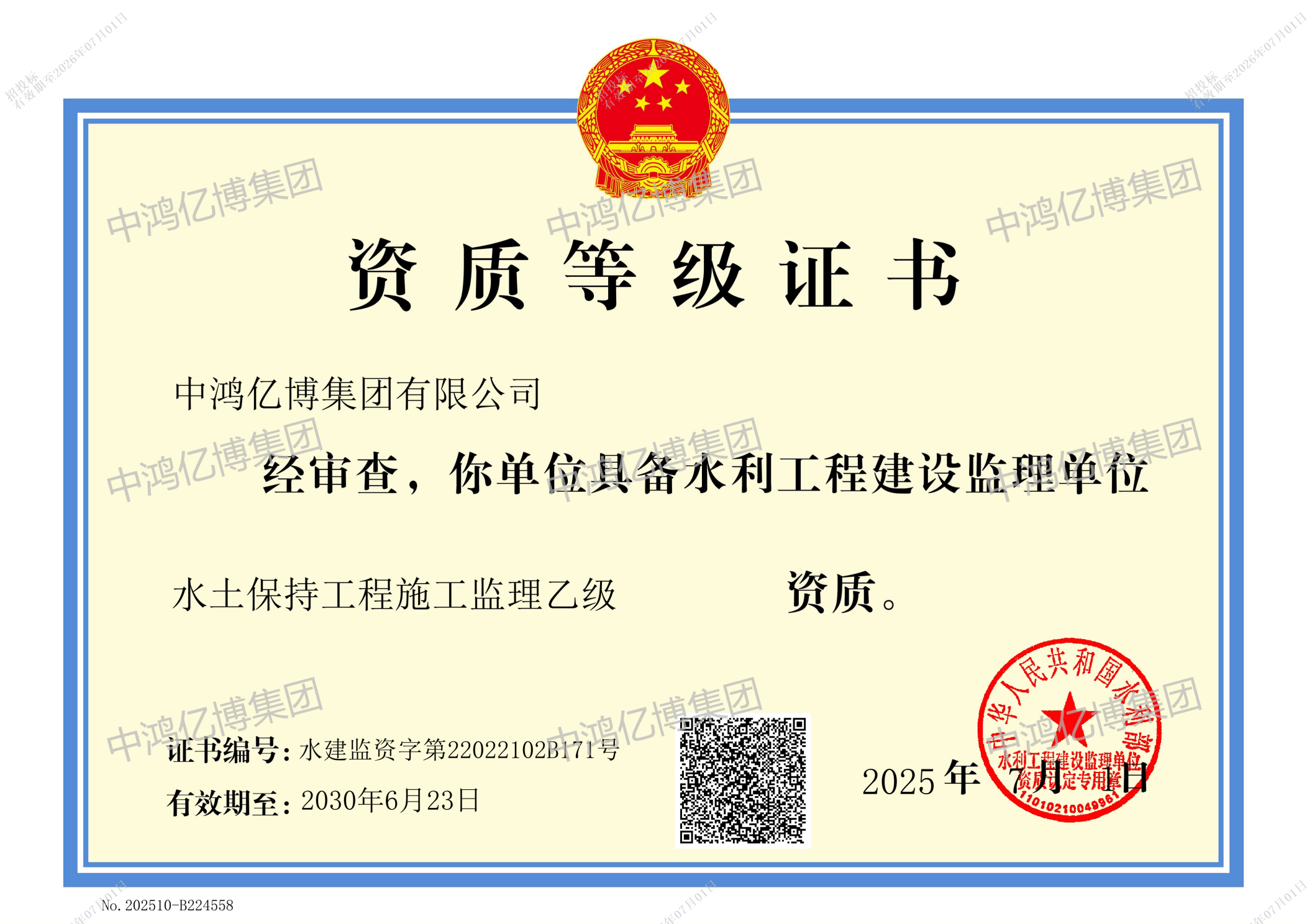 2010年3月取得住建部房屋建筑工程乙级、市政公用工程乙级监理资质