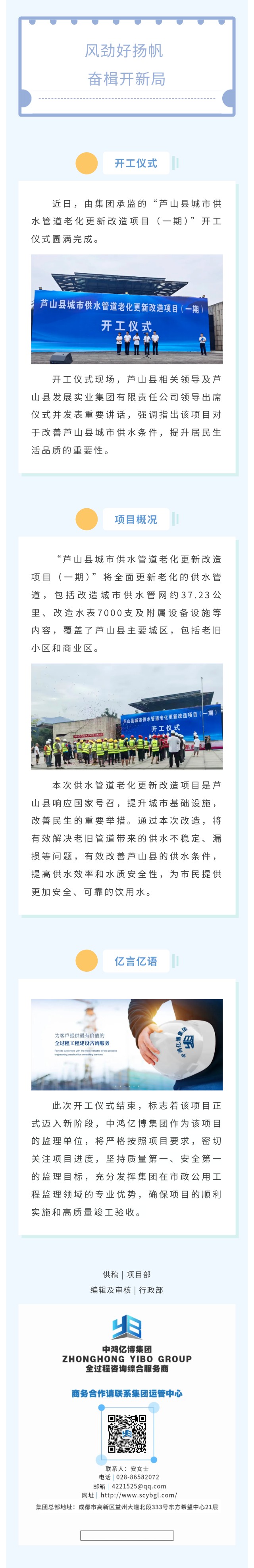 亿博动态 | “风劲好扬帆·奋楫开新局”祝贺集团承监的“芦山县城市供水管道老化更新改造项目(一期)”开工仪式圆满完成