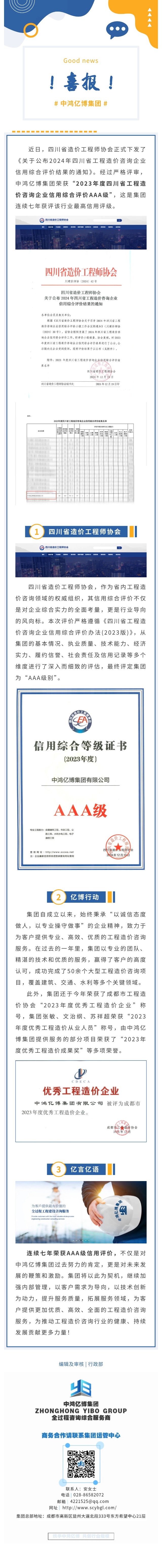亿博动态 | 中鸿亿博集团连续七年荣获“四川省工程造价咨询企业信用综合评价AAA级”