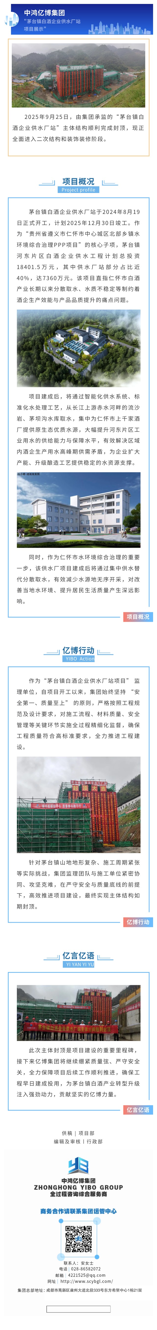 亿博动态 | 祝贺集团承监的“茅台镇白酒企业供水厂站项目”主体结构顺利封顶!