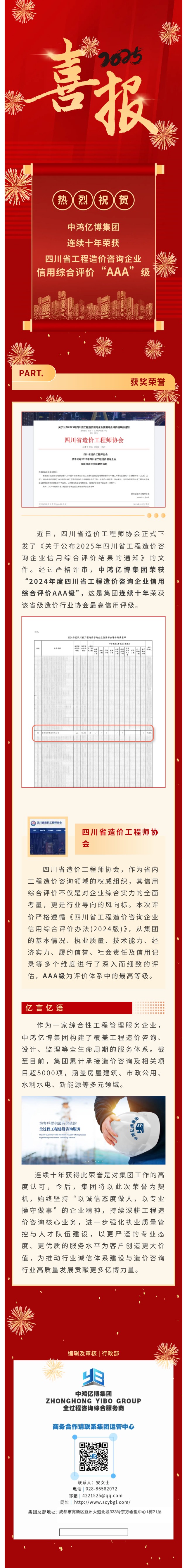 集团连续十年荣获“四川省工程造价咨询企业信用综合评价AAA级”