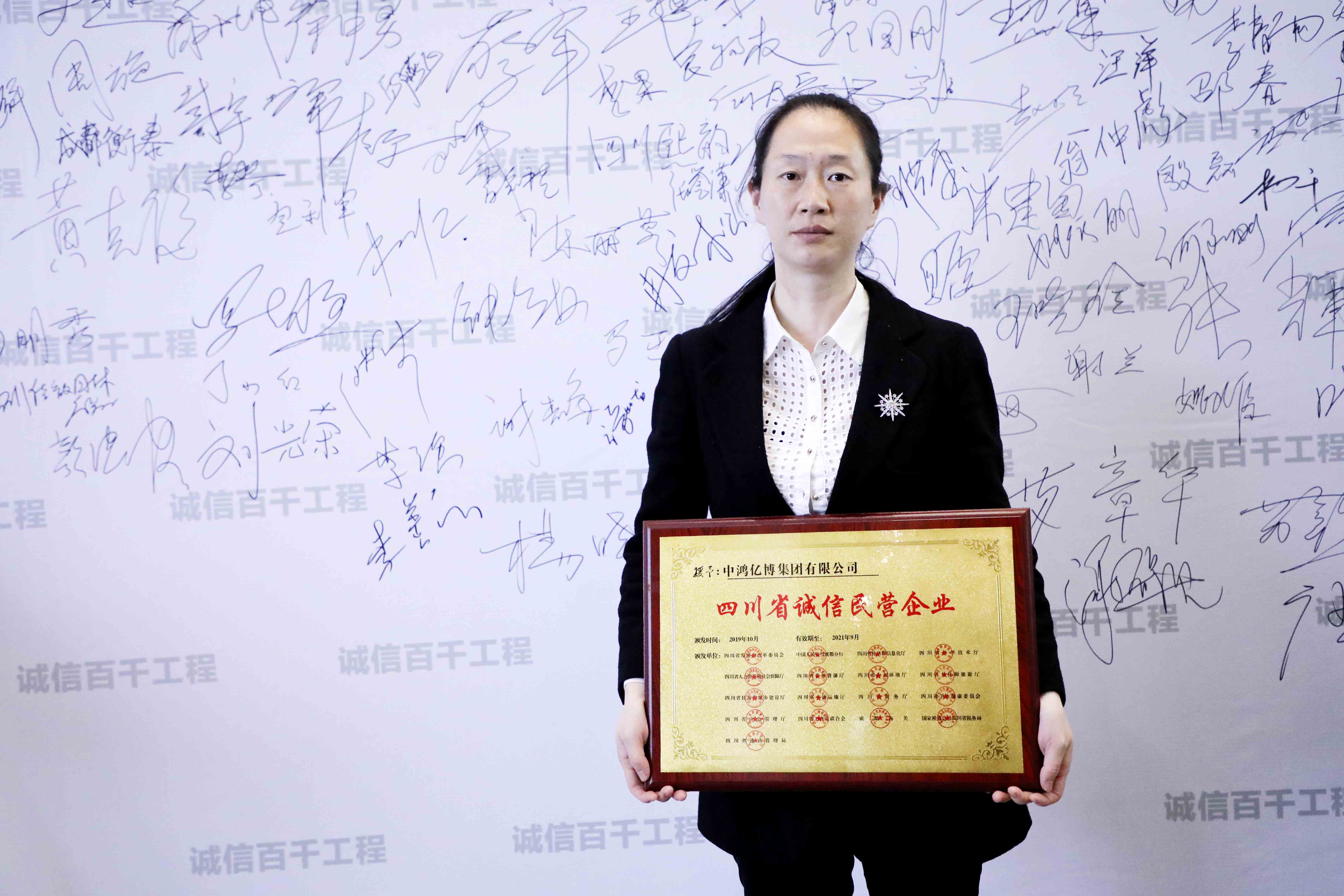 中鸿亿博集团有限公司得到社会和专家的一致认可,在众多实力企业中脱颖而出,被授予“四川省诚信民营企业”光荣称号。