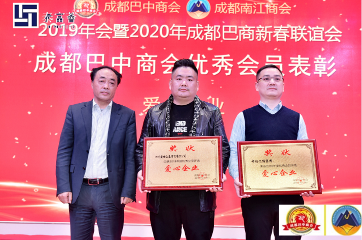 热烈祝贺中鸿亿博集团在2020年新春联谊会上荣获成都巴中商会“爱心企业”光荣称号
