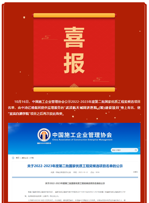 恭喜集团监理项目再次荣获“国家优质工程奖”!