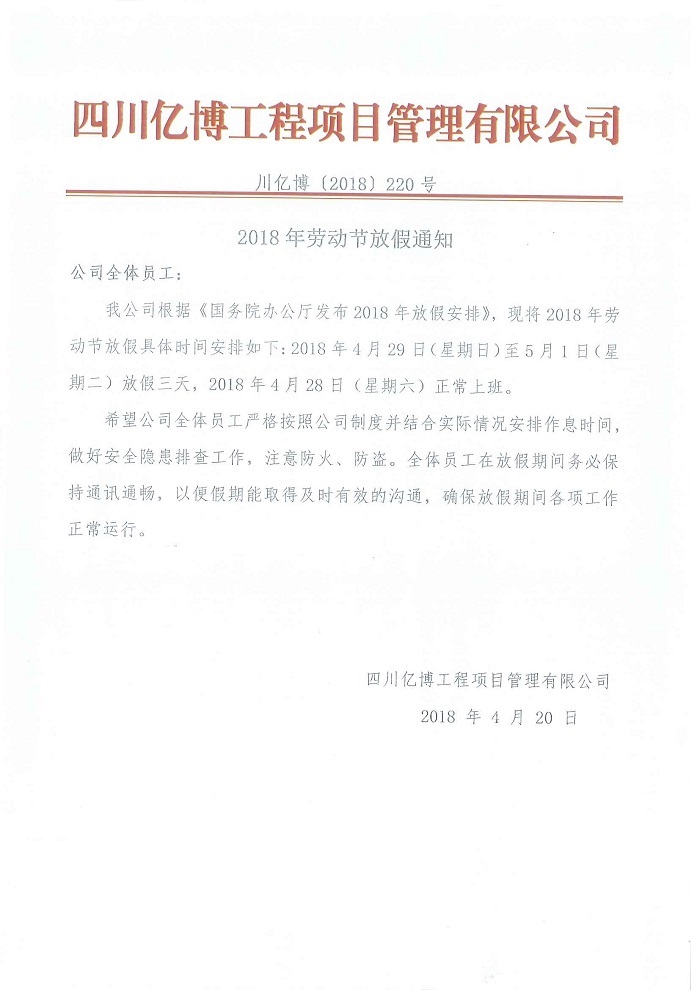 2018年劳动节放假通知