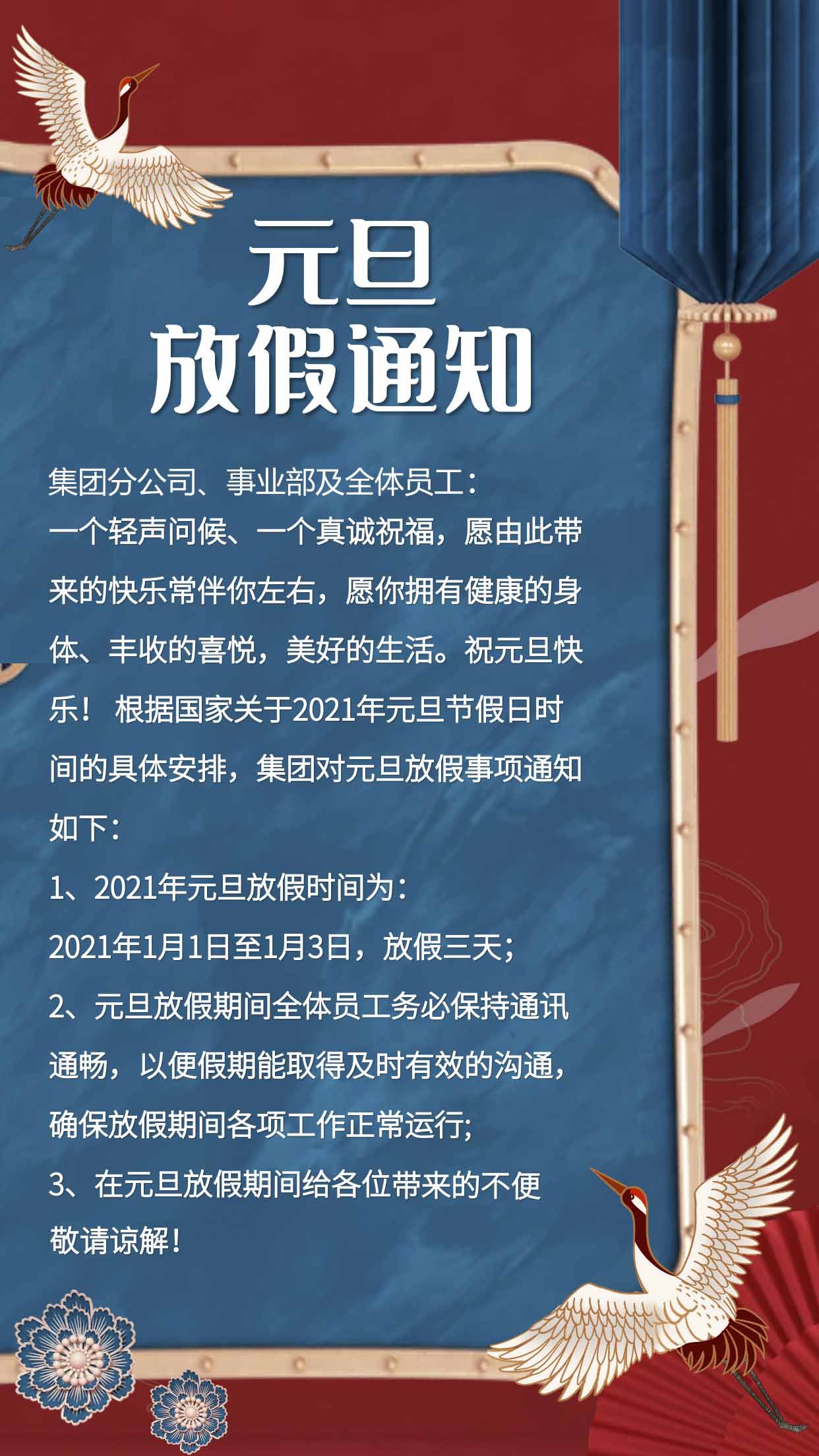 集团公司元旦放假通知来啦!速来围观!