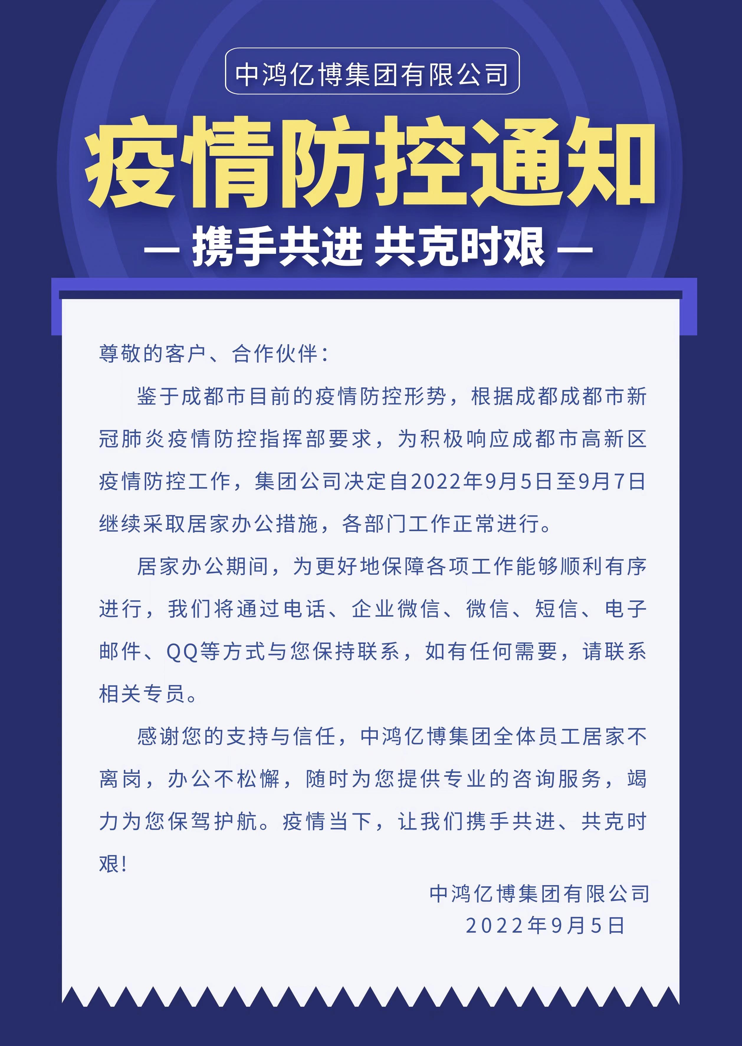 中鸿亿博集团有限公司关于疫情防控的通知