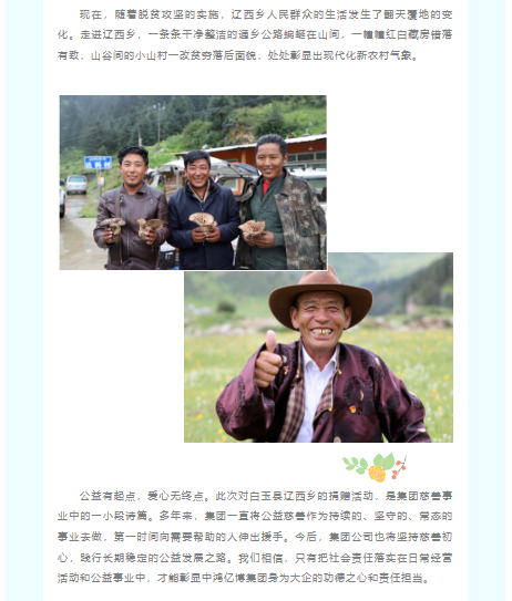 集团对白玉县辽西乡进行公益捐赠